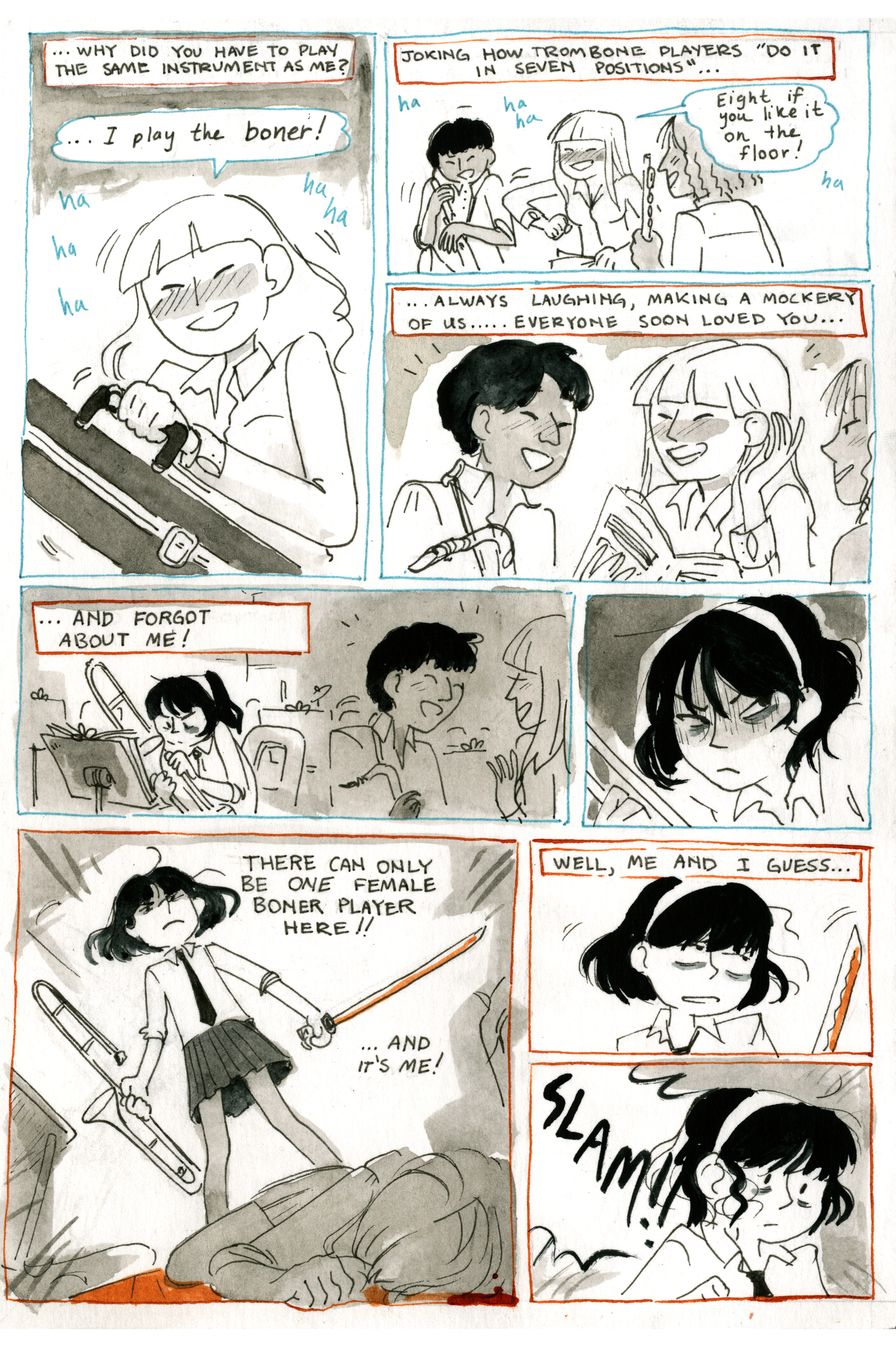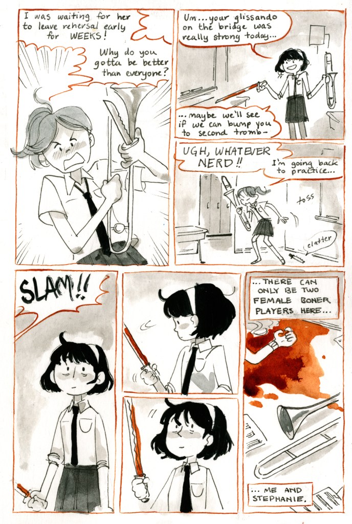 Tromboner Girls Musician – Classroom – Murder – Jealousy My homework from my Graphic Novel: Young Adult workshop with Tillie Walden and Jo Knowles at Center For Cartoon Studies August 2017